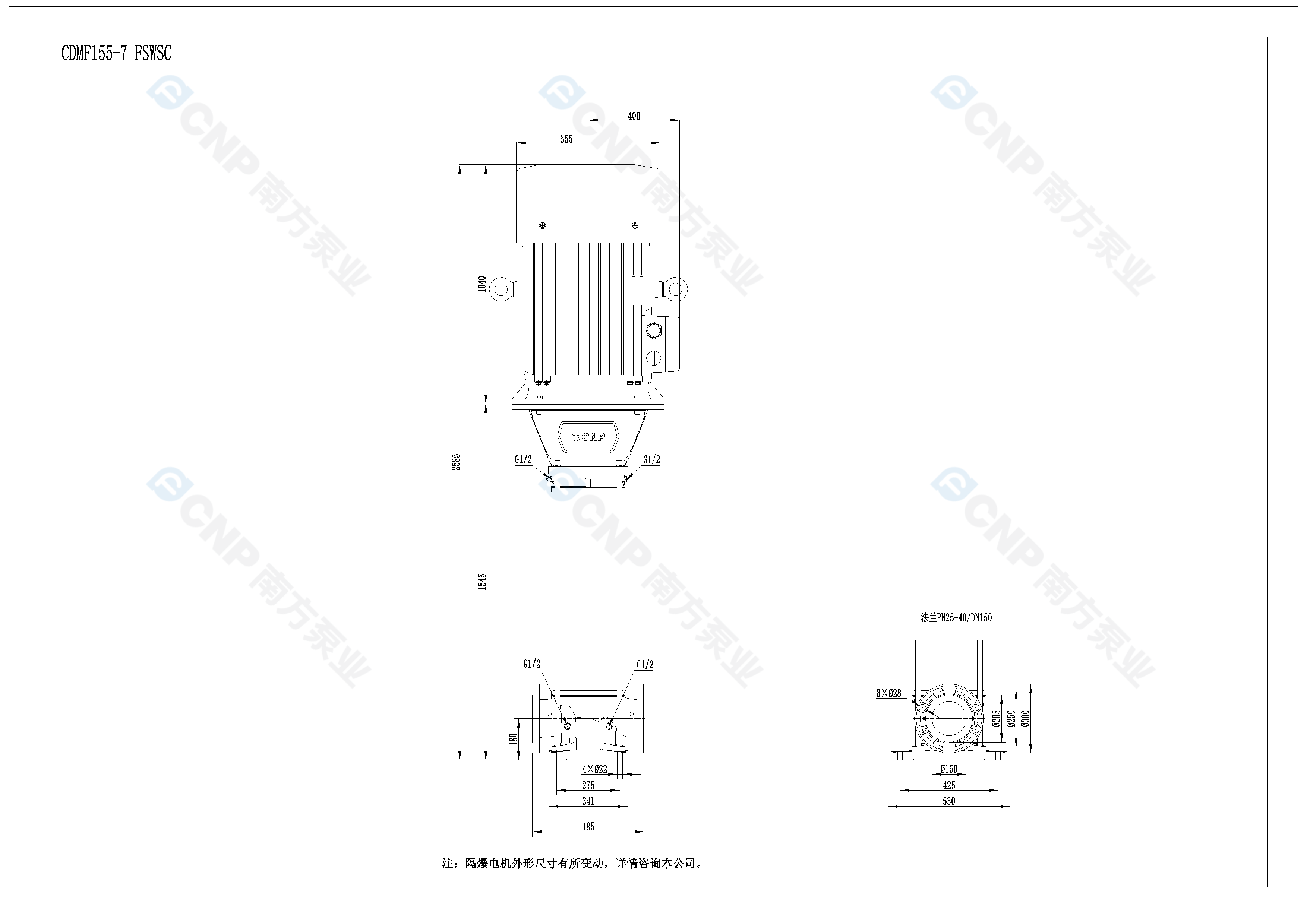您的位置: 南方泵業(yè) > 在線選型 > 多級泵 > CDM(F)(50Hz) > CDM155-7