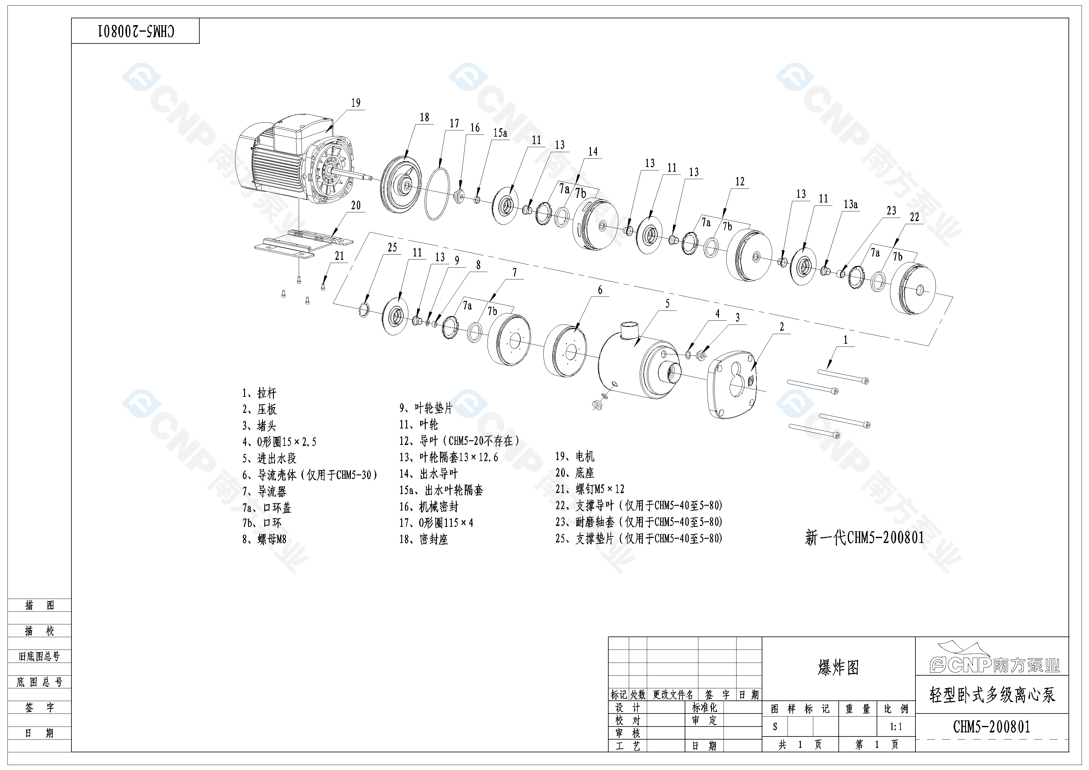 南方泵業(yè)CHM5-70水泵明細參數(shù)
