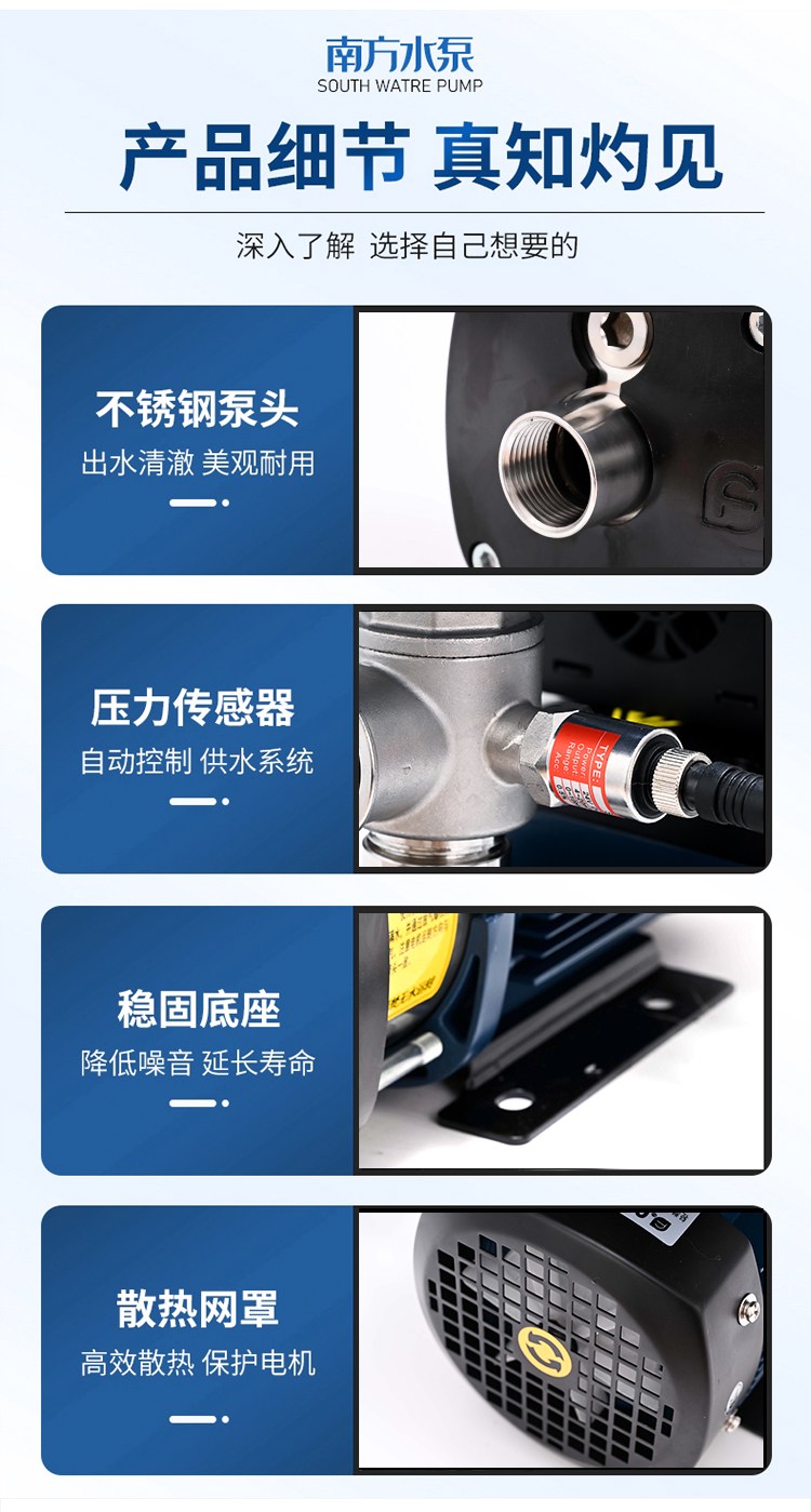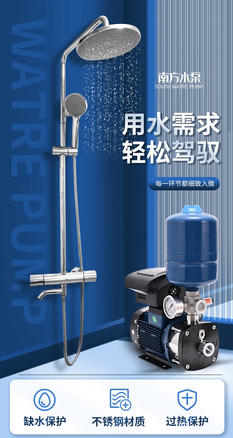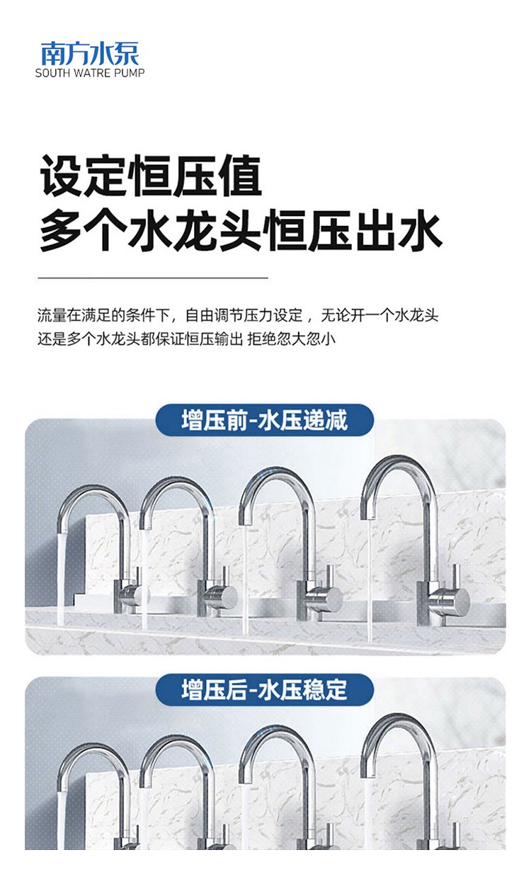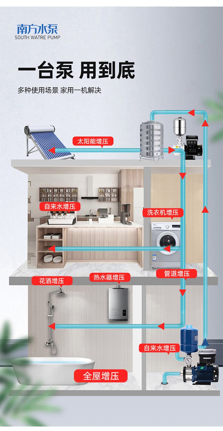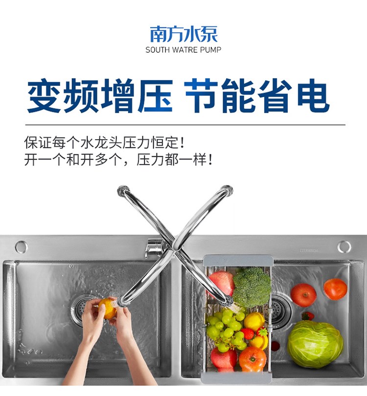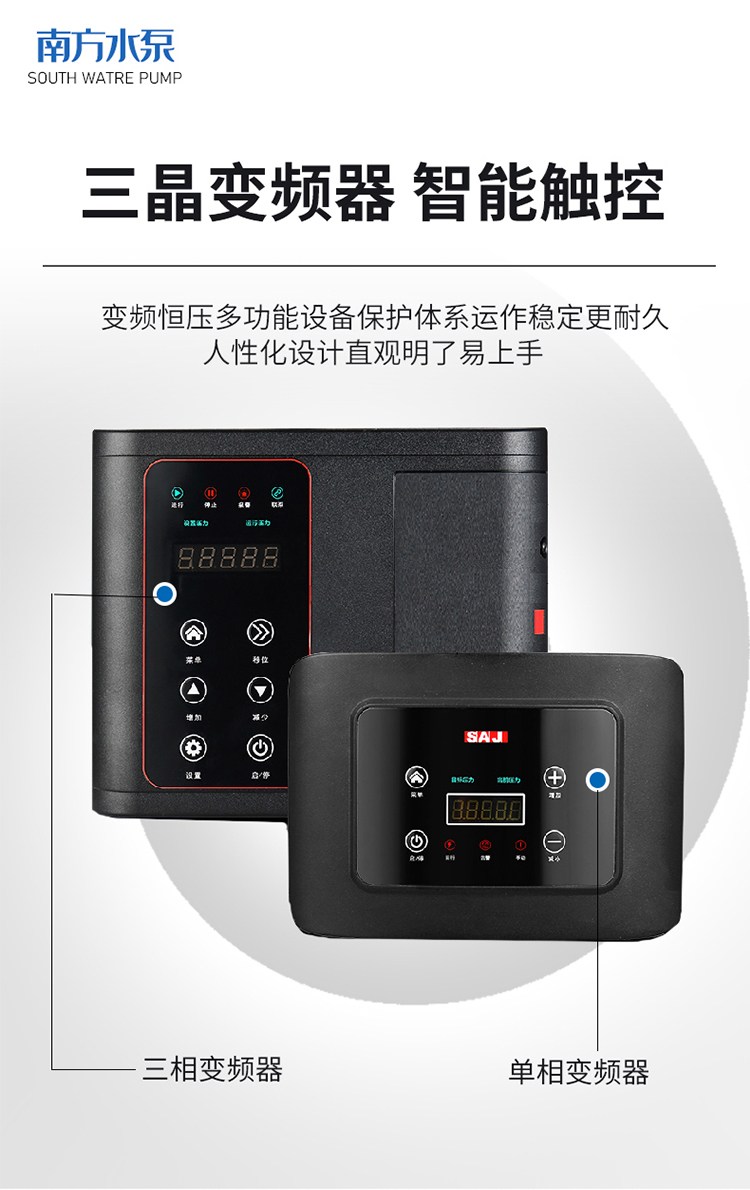 南方CHME系列臥式智能恒壓變頻泵采用了變頻調(diào)速及自動(dòng)化控制相結(jié)合的技術(shù),配合高效節(jié)能的CHM非自吸輕型臥式多級(jí)離心泵。整機(jī)主要由CHM泵、控制器、傳感器、壓力罐、五通止回閥及軸向抗震壓力表等組成。具有性能穩(wěn)定、高效節(jié)能、全自動(dòng)智能控制、低噪音、耐腐蝕、結(jié)構(gòu)緊湊、外形美觀、體積小、重量輕等特點(diǎn)。